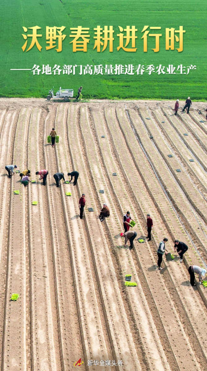 不误农时、不负春光。从岭南阡陌到塞北粮仓,从江南水乡到戈壁绿洲,冬小麦由南向北拔节孕穗,冬油菜进入结荚期,早稻大面积栽插,各地热气腾腾的春耕场面令人振奋。
